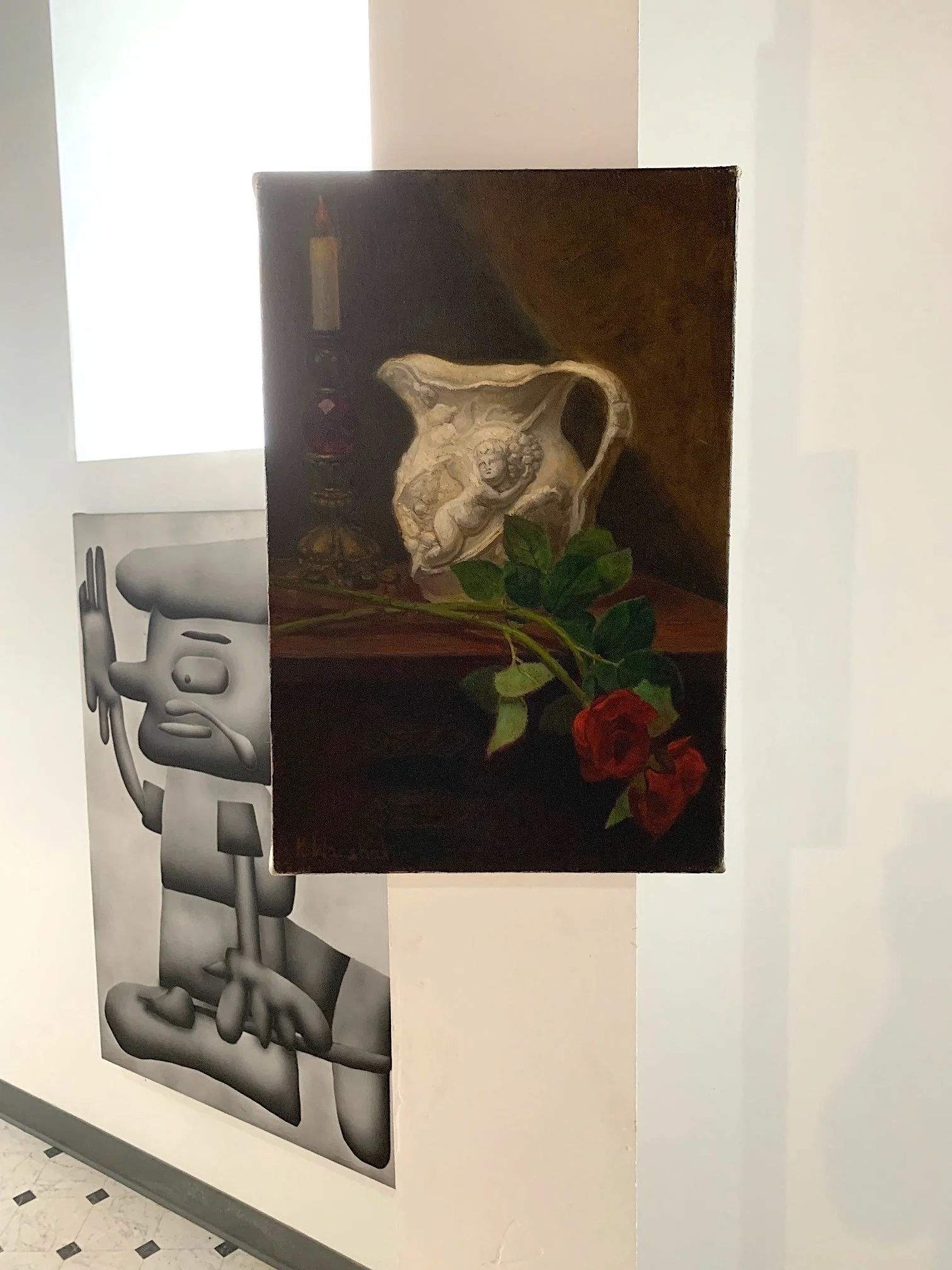 The artists featured in this exhibition vary considerably in terms of background, approach, and aesthetic. Traditional, academically conscious genre subjects such as portraiture, landscape, and still life are subverted through their proximity to paintings and sculpture that explore humor, absurdity, and the uncanny through a myriad of different styles, subjects, and materials.
